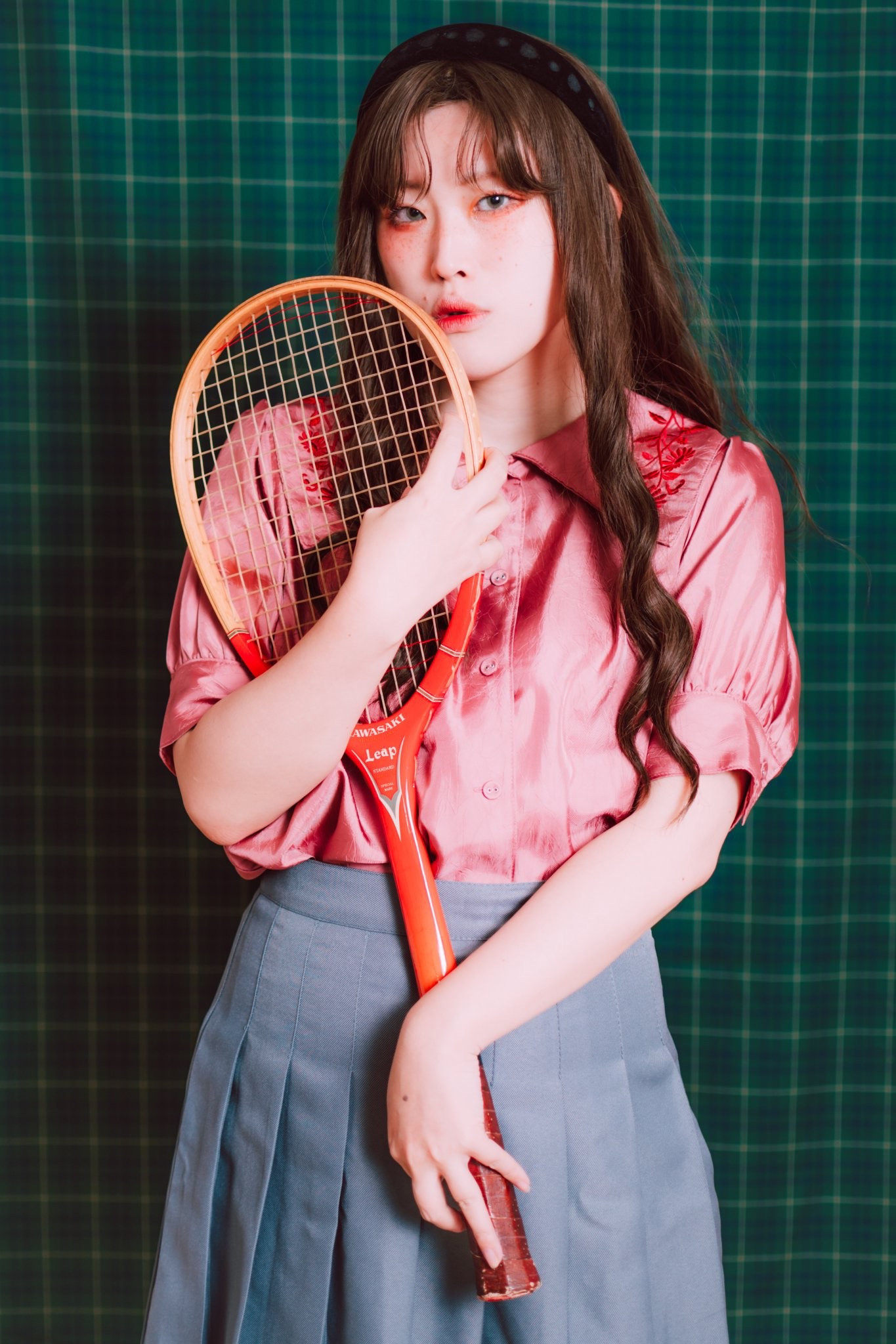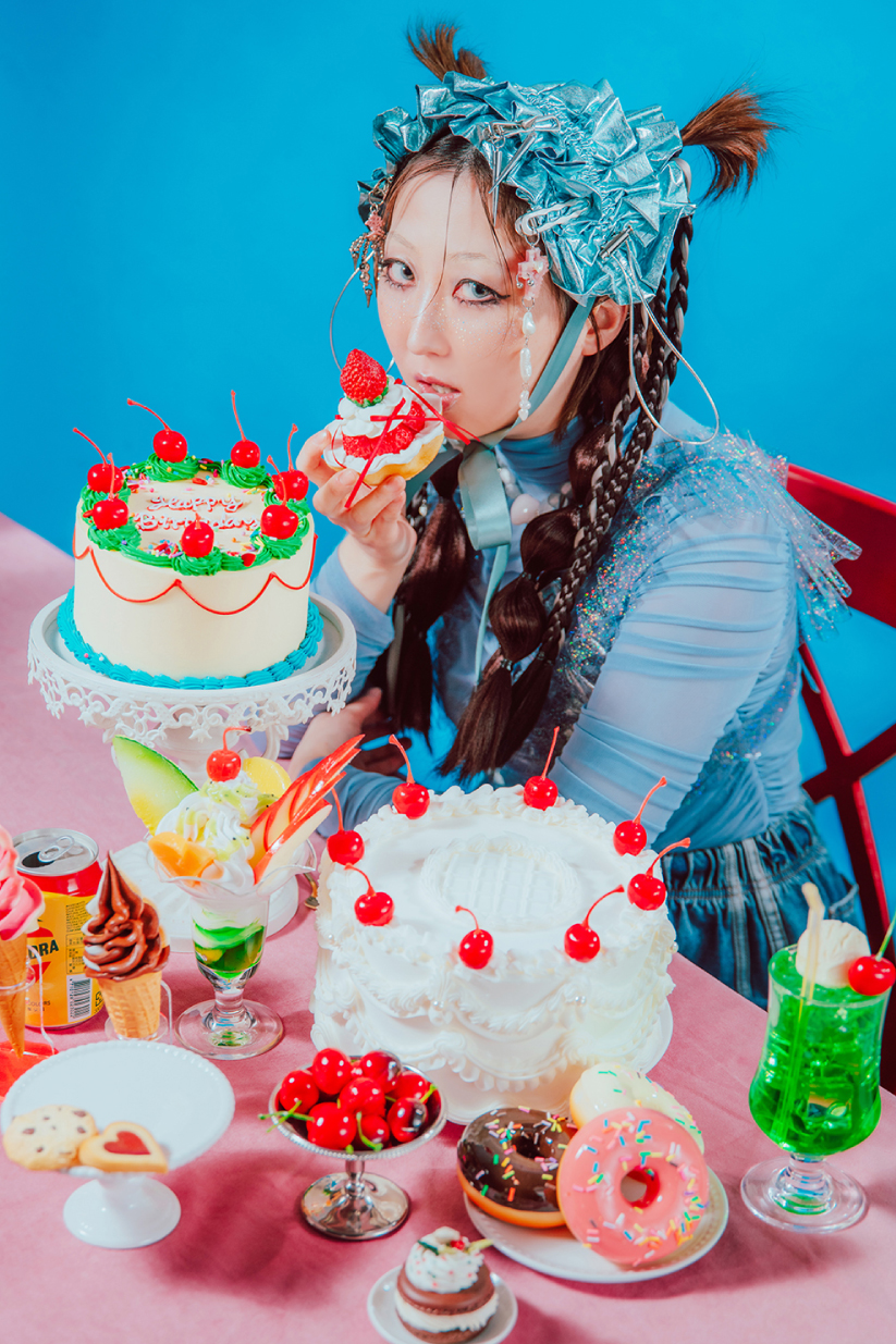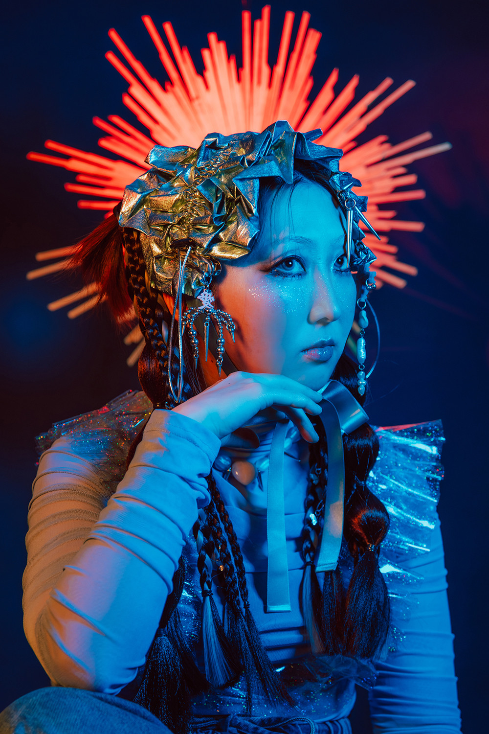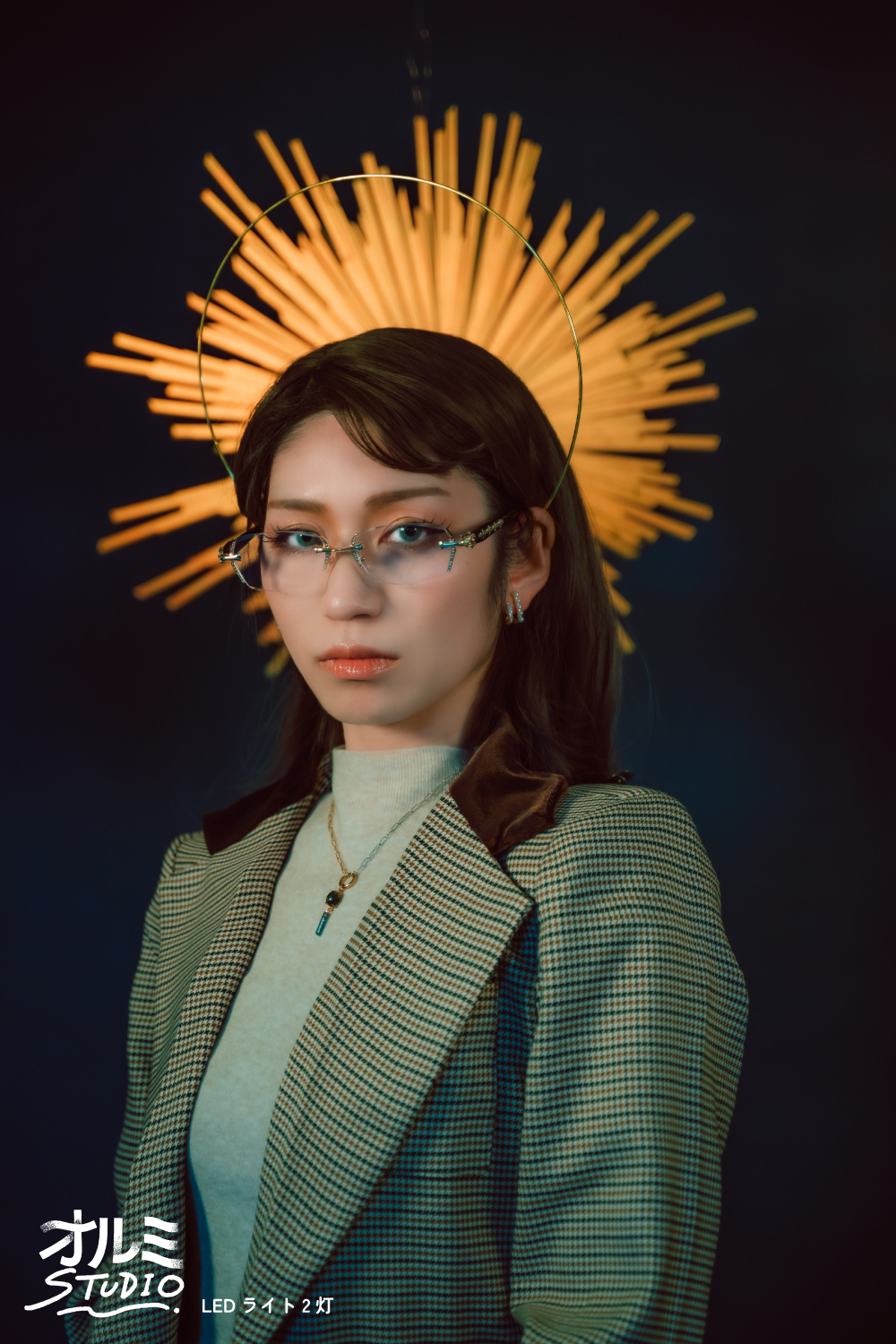 ネイビーの背景紙にて、後光カチューシャを使った作例です。