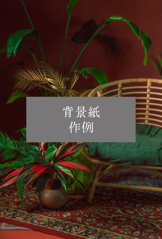 また、背景紙の上に+500円でビニール養生することで、植物をばらまいたり、花瓶を置いたりなどのアレンジが可能です!
