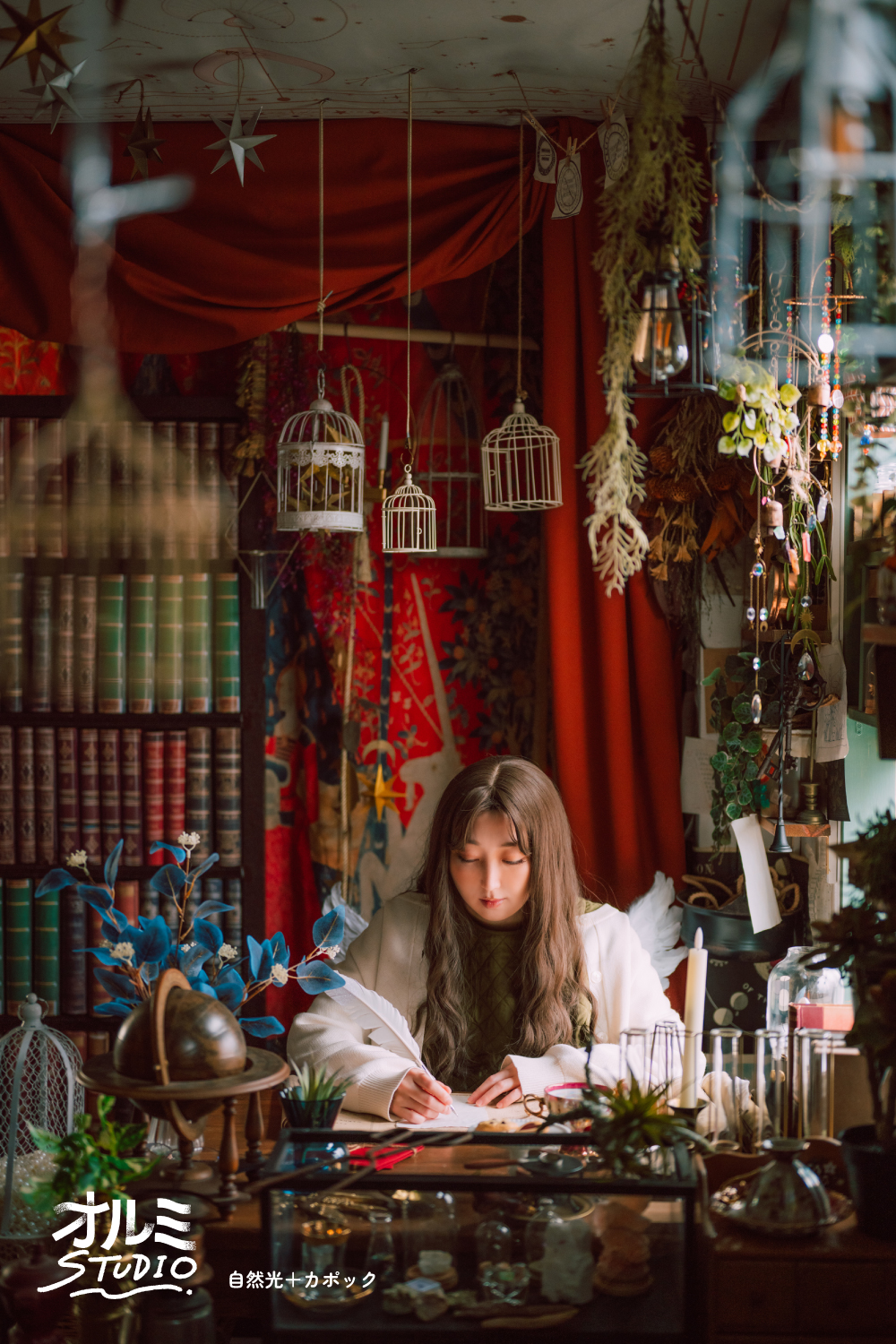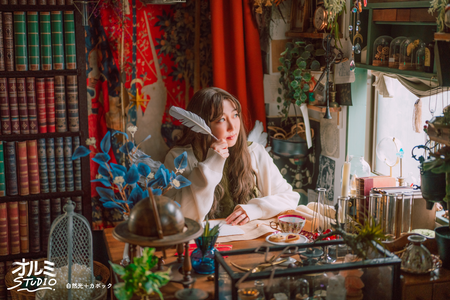 ステンドグラスブースの自然光による着物撮影です。