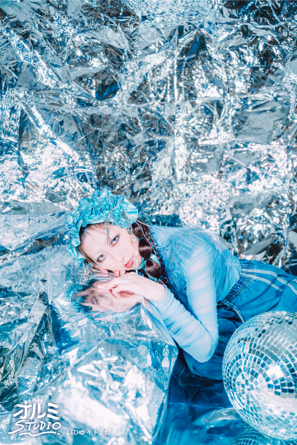ミラーシートにストロボを当てて水のような表現が可能です。